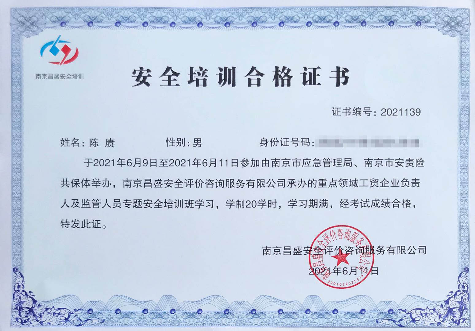 陳賡或南京市安全培訓合格證